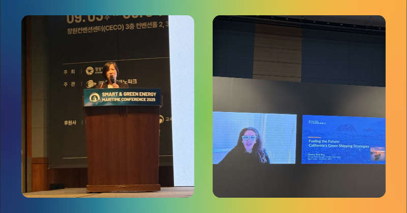 Ulsan Port Authority invited Pacific Environment, Hyundai Merchant Marine (HMM), Shanghai Municipal Transportation Commission (SMTC), Fung Research and Korea Research Institute of Ships and Ocean Engineering to the session “Green Shipping Routes and Maritime Logistics” at the Smart and Green Energy Maritime Conference in Gyeongnam, Republic of Korea. HMM outlined its climate commitments through the Net Zero Strategy and the Korea Research Institute shared new research on electric-propulsion zero-emission vessels and a vision for a Mokpo-Jeju coastal green shipping corridor.